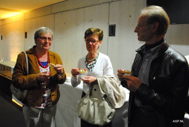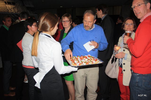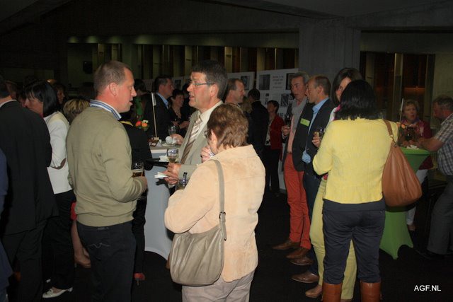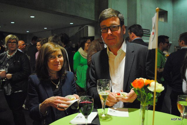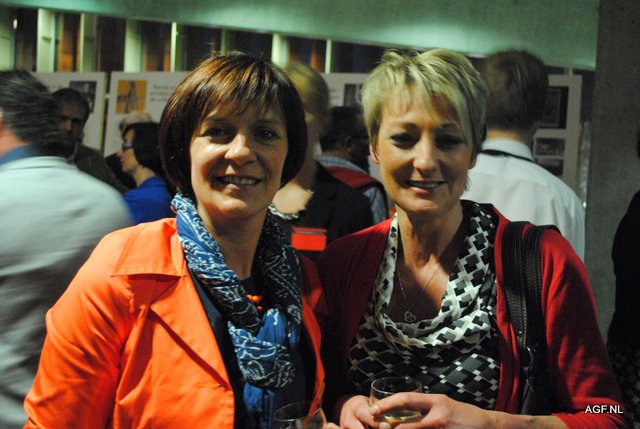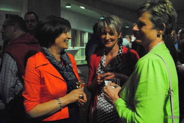 De dames kleurden fleurig tussen de overwegend grijze pakken van de mannen