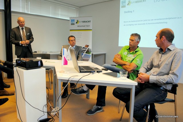 Dick Hylkema (LTO Noord Glaskracht), Ad van den Berg (Agro Adviesburo), Geert van Oosterhout (LTO Noord Glaskracht) en Ewald de Koning van Plantenkwekerij van der Lugt