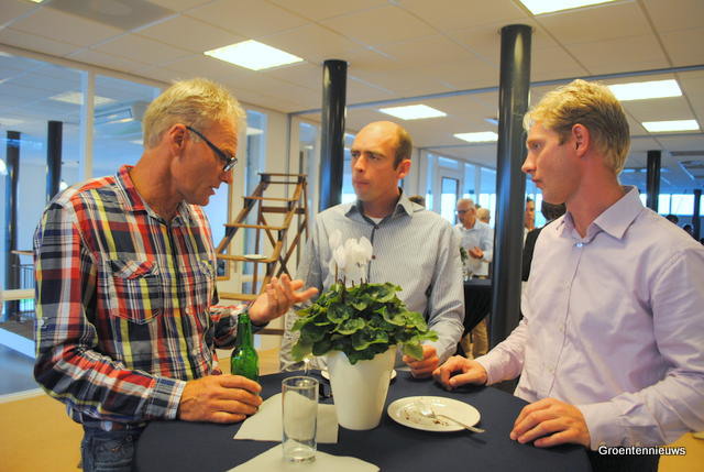 Jan Enthoven (NAJK en teler pioenrozen), Marcel Jansen (LTO Groeiservice) en Piet Enthoven, tomatenteler