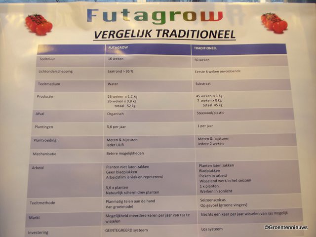 Futagrow: Hier worden tomatenplantjes die in al een bloemetje hebben in kokos gezet. Het groeit verder op water.