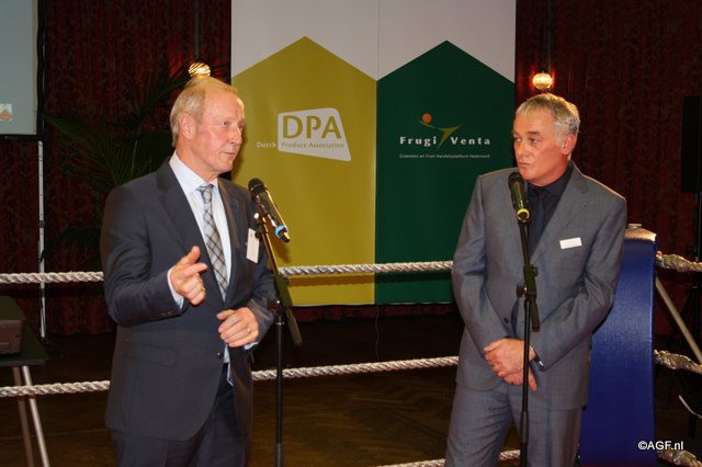 Innige felicitatie tussen voorzitters Kees Wantenaar (DPA) en Cees den Hollander (Frugi Venta)