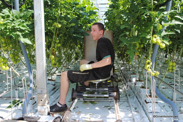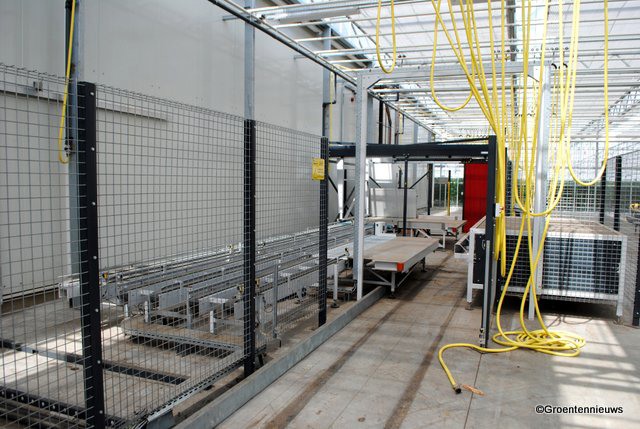 Het transportsysteem voor de tomaten was nog niet in gebruik. Nu is de oogst van tomaten ook in volle gang.