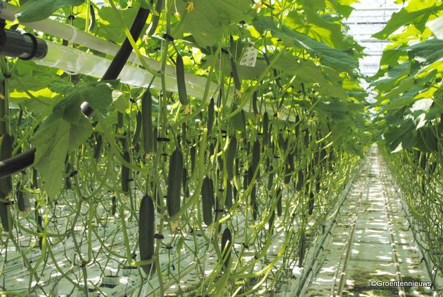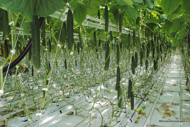 Snackkomkommer Mewa. Het areaal is dit jaar uitgebreid naar 8.000 meter.