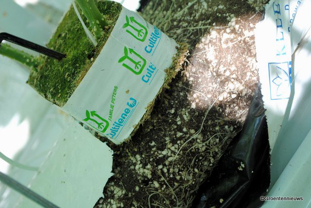 Het gewas staat deels op substraat van Knauf Perlite/Kleeschulte. Een ander deel staat op cocopeat van Dutch Plantin.