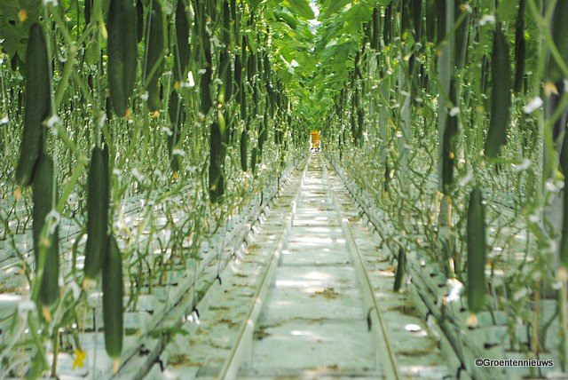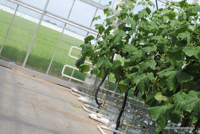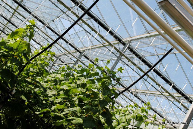 Gietboom boven de komkommerplanten? Toch maar niet.
