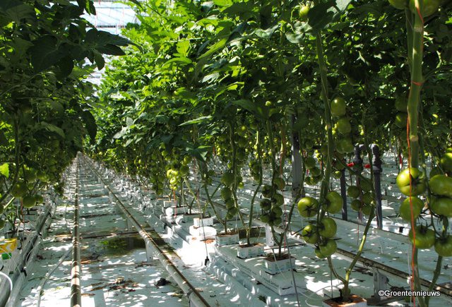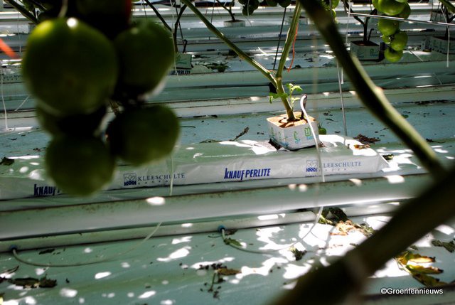 Van de trostomaten staat 3 hectare op Knauf Perlite/Kleeschulte growbags