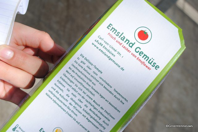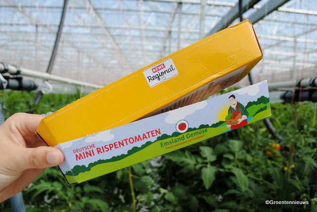 Op zowel de verpakkingen voor retailer Rewe als de eigen verpakking wordt informatie gegeven over de herkomst van de tomaten.