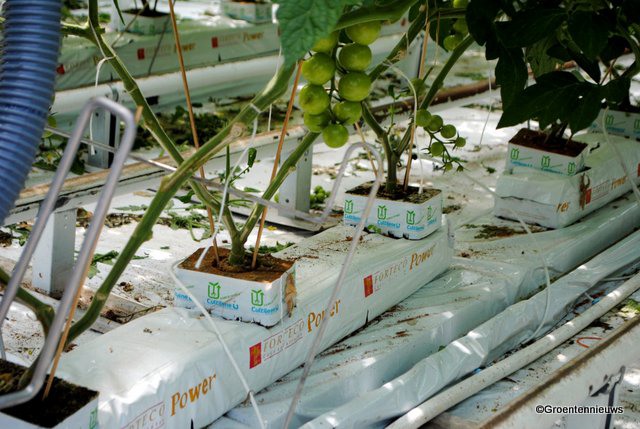 De tomaten staan op growbags van Kleeschulte en Dutch Plantin, maar met andere substraten worden proeven uitgevoerd.