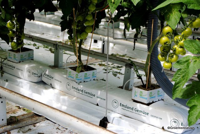 Drie hectare tomaat en het totale areaal snackkomkommers staat op Growbags van Kleeschulte. De rest van het areaal groeit ook op natuurlijk materiaal. Bij Emsland Gemüse wordt principieel niet op steenwol geteeld.