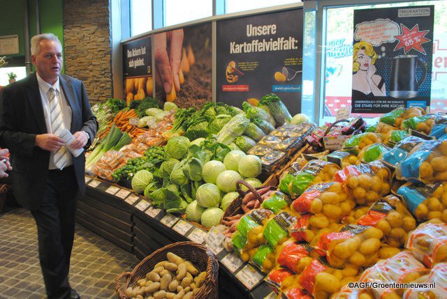 Jorgen Loewens van Edeka bij de diverse aardappelen.