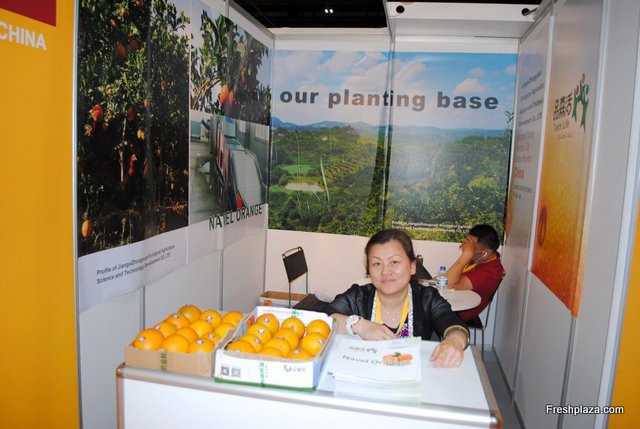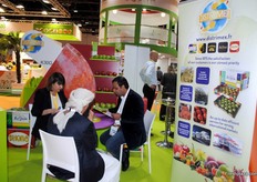 Belgie was goed vertegenwoordigd. Onder de slogan Premium Quality, Perfect Taste - Fresh from Belgium verenigden verschillende bedrijven zich. Op de foto Jan Engelen (Veiling Hoogstraten) Sofie Lambrecht (Vlam), Philip Appeltans (VBT), Isabelle Ossey (Biorano) Jo Lambrecht van BelOrta, Vitaliy Poplevin van Bel'export en Anthony Henderson van Agrafresh Van de Vlam-delegatie maakten verder Tony Derwael (Bel'export), Ali Nasser (Biorano), Dries Sebrechts en Veronique Vanherle (DSF) deel uit.