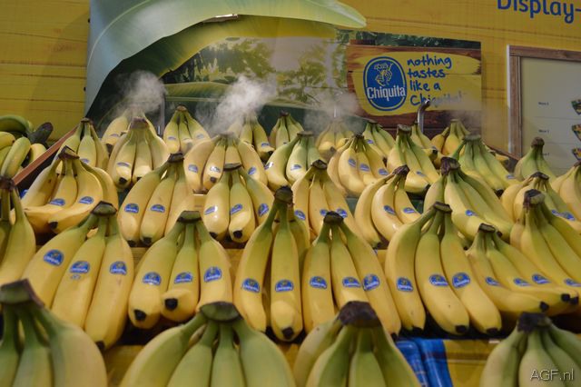 De bananen van Chiquita worden gekoeld met een nevelmachine.