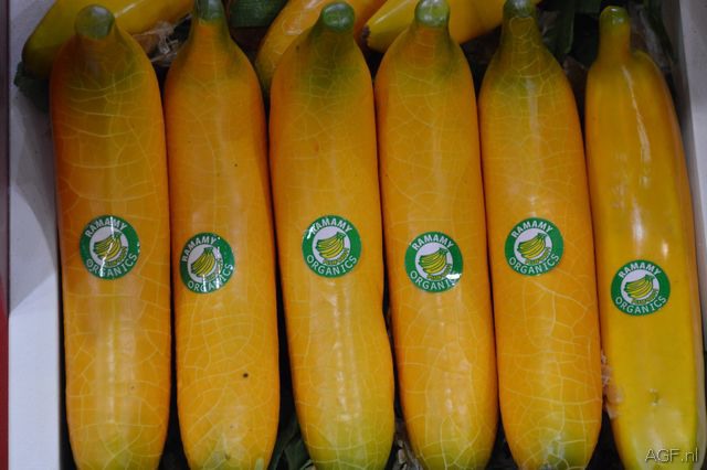 Mini-groenten zijn hip. Van veel producten was er een mini-variant te vinden, zoals deze Mini Pattisons, geteeld in Afrika.