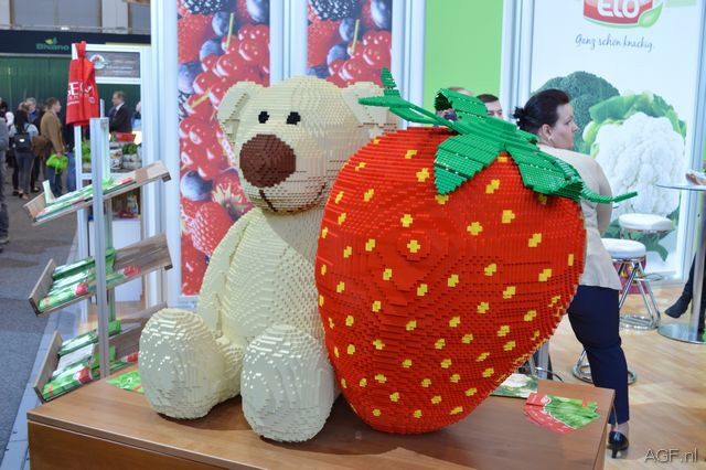 Hoeveel legoblokjes zouden er nodig zijn om een grote beer en een aardbei in elkaar te zetten?