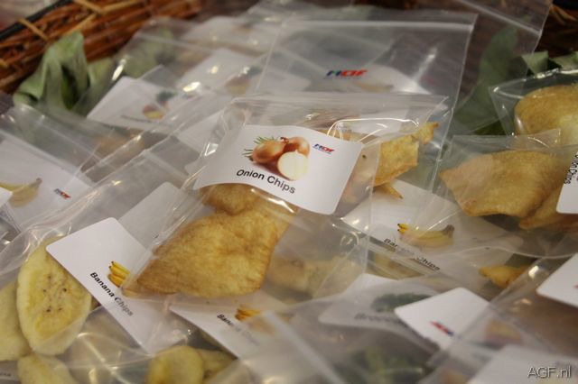 Als het om productpresentatie gaat kunnen de Chinese standhouders nog wel wat bijleren. Hier wordt bewerkte knoflook aangeboden van schijfjes tot poeder.