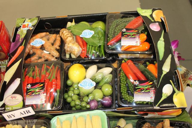 Exoten, Aziatische groenten en pepers in de stand van Asia Exotic uit Thailand