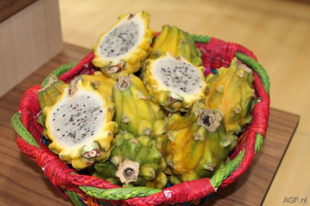 gele pitahaya, een bijzonder product om te zien en nog eetbaar ook