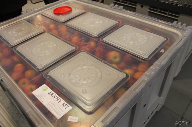 en zo zien de nieuwe kratten van Polymer er uit gevuld met fruit