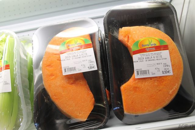stukken pompoen los verpakt bij een Italiaanse exposant