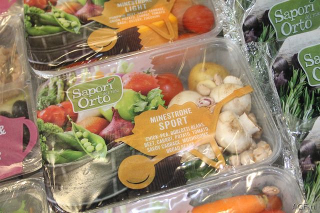 "verse groentepakketten voor het maken van Minestrone soep. "Dit is de meest gegeten soep in Italië", aldus Giullo van Sipo. "Wij hebben verschillende varianten geïntroduceerd voor het maken van Minestrone"