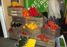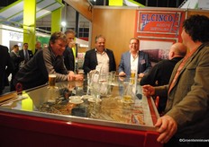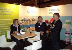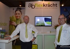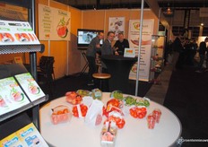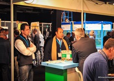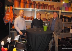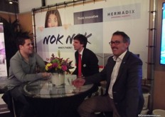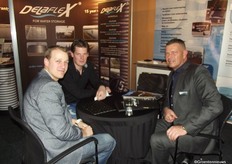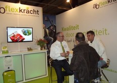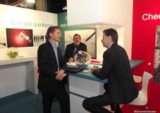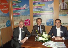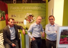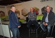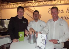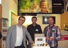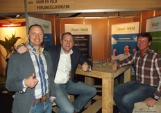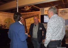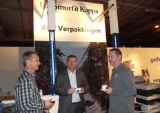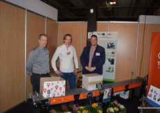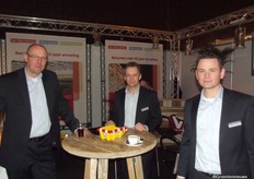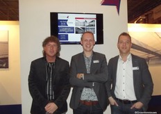 De verpakkingen van Freshpack waren fraai te zien in de stand. Evert-Jan Wassink, Daniel Tol en Rohan Ovens, de Australische gast, zitten in de stand
