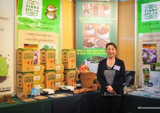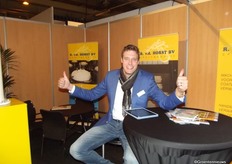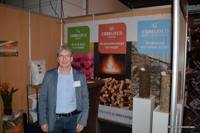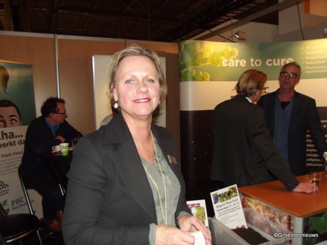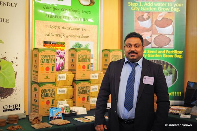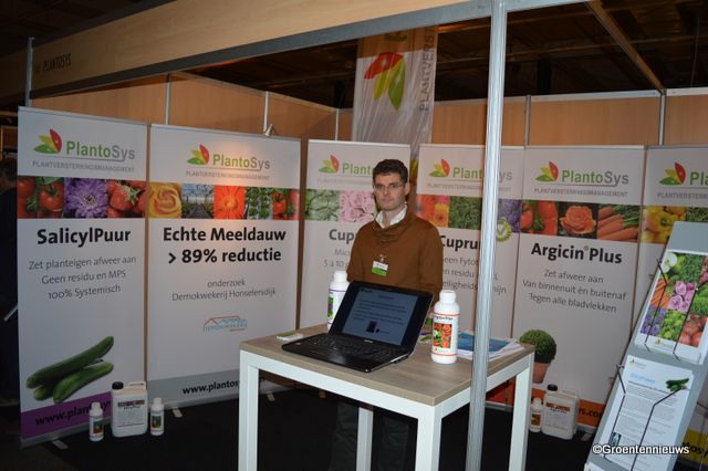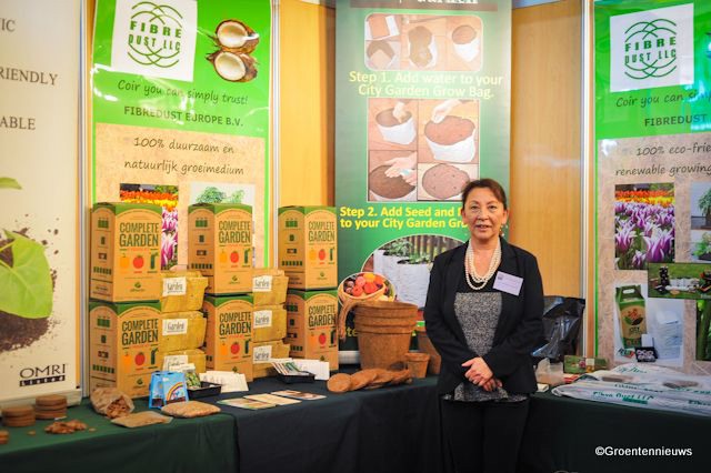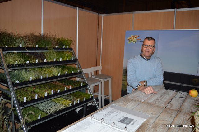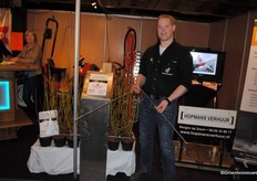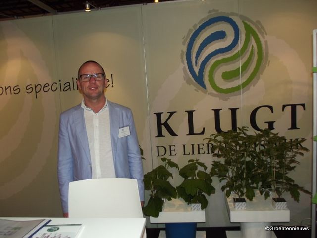 Niet helemaal de juiste verkopers bij Wayland Developments, waar Alex van Os (Hollandplant) even de stand bemant, maar wel het juiste enthousiasme.