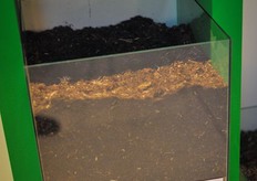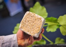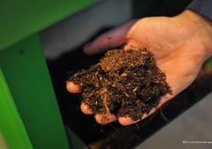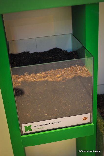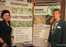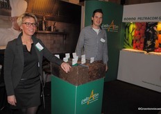 Els Thoelen en Hans Baekelmans van Peltracom bij de substraten van het bedrijf
