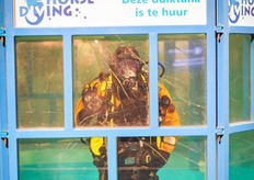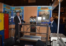 Marel en Jeff van de Bogert van Lightshine Cleaning hebben de nieuwe machine meegenomen naar de beurs