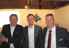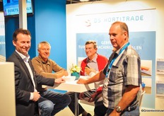 Patrick Ruckert (links) is nieuw bij Scherpenhuizen. Op de foto van links naar rechts verder Peter Strijbos (van Nature), Sjaak Verploegen (Scherpenhuizen) en Henk Kuipers (Scherpenhuizen)