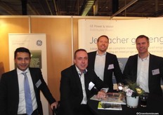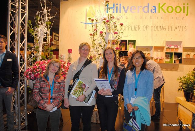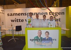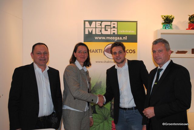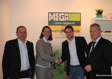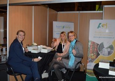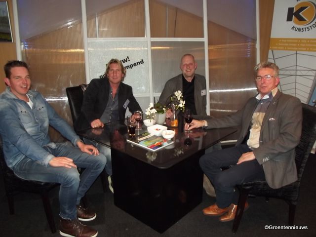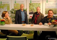 Als enige vrouw Ines van Marrewijk van Groen Agro Control en de mannen van links naar rechts van MeeGaa Substrates Peter Zethof,Frank Meeuwisse en Ivo Breugelmans