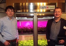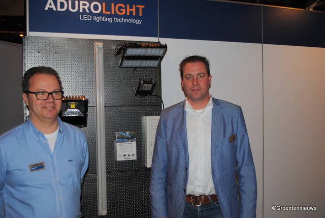 Ruud Fransen en Gerben Jutten van Wildkamp staan bij de nieuwe LED-verlichting Aduro-Light