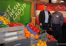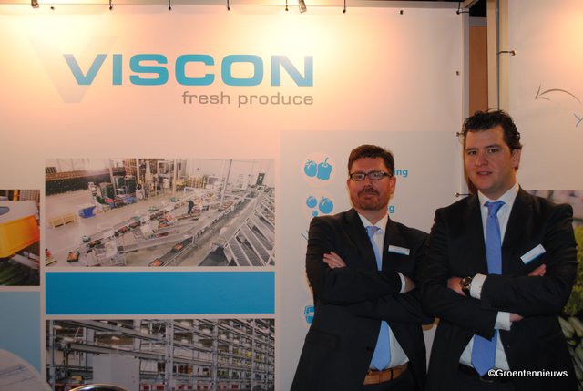 Tim Huijben en Aaron Bickell van Viscon Freshproduce staan op de relatiedagen om de nieuwe type weeglijn te promoten, die voornamelijk voor zachtfruit geschikt is