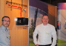 Arno Veldhuis en Maarten Cats van Alfa staan bij de nieuwe brand detectiesysteem