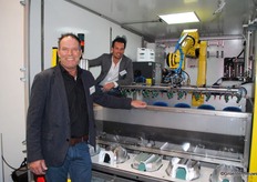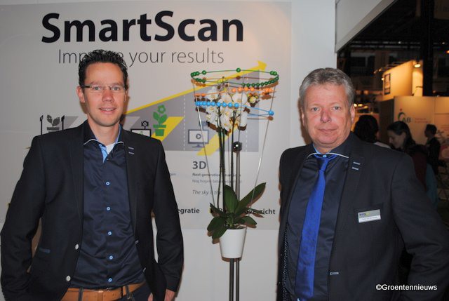 Peter Hendriks en Peter van der Knaap bij de nieuwe Smartscan 3D. De Smartscan telt met hoge betrouwbaarheid knoppen en bloemen