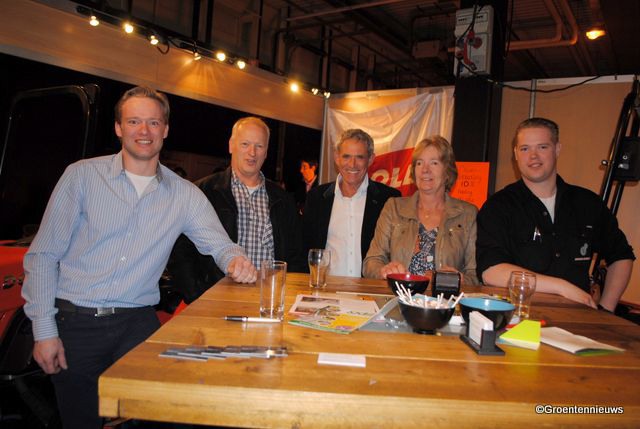 Een volle stand bij Lek/Habo, met Aad de Koning, Sjaak van der Meer, Martin van Meurs en Hennie Kosman