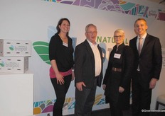 Imca van Tussenbroek, Huub Winters, Nancy Meijer en Mark Hoogendoorn laten de nieuwe producten van Biopol Natural zien.