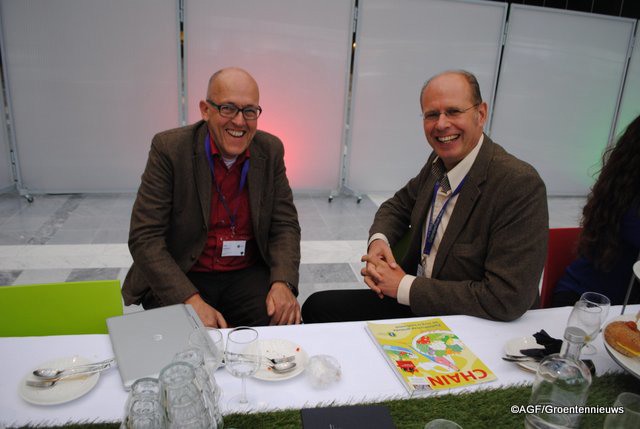 Dagvoorzitters Koen Joosten en Rob Baan - afkomstig uit de gezondheidszorg en de tuinbouw. De combinatie waar het vandaag om gaat.