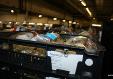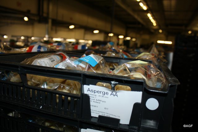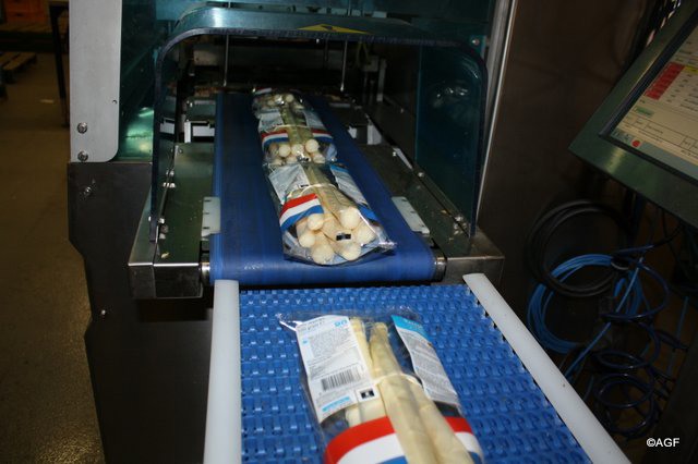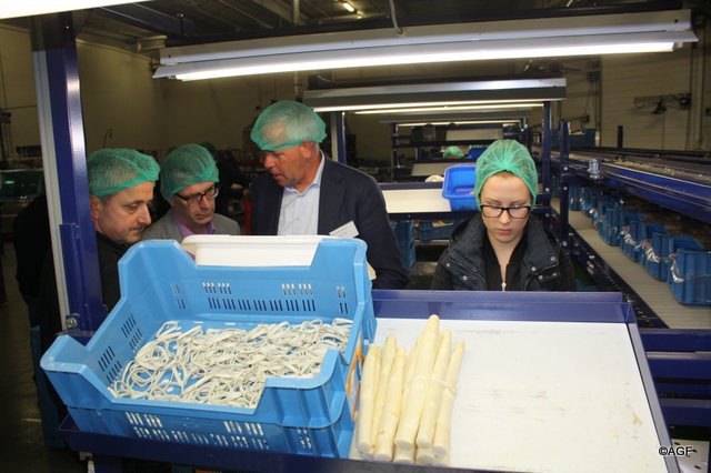 Hans van den Heuvel, Jos Muijsenberg en Riny van der Staak keuren de asperges