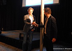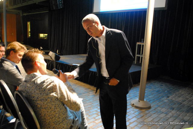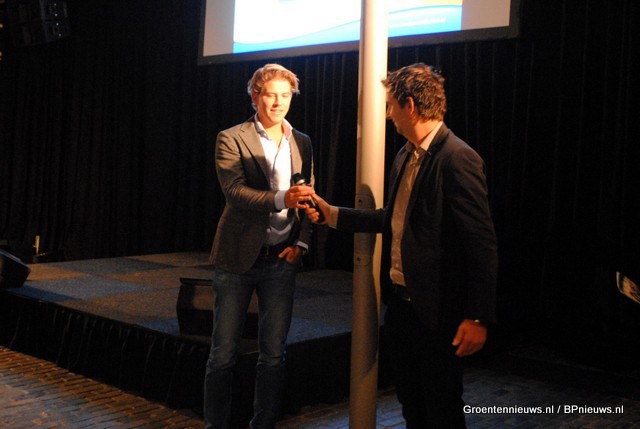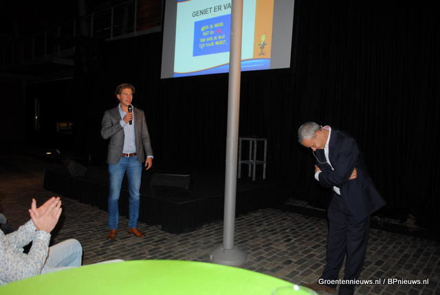 Oostland-voorzitter Wouter van den Bosch bedankt Feike Cats