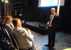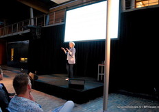 Feike Cats duikt de zaal in tijdens zijn presentatie over Klanthousiasme