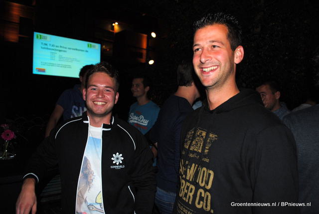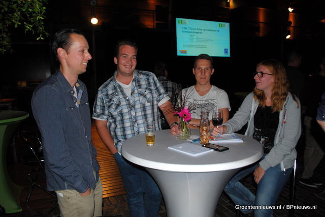 En tijd voor de borrel! Marlon Labrie, Annick van Santen, Sjoerd van Marrewijk en Rob van Dijk
