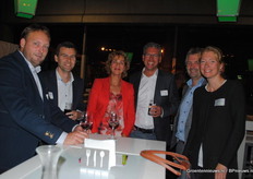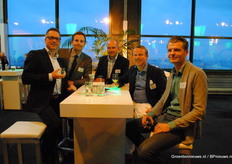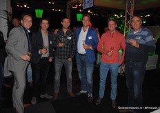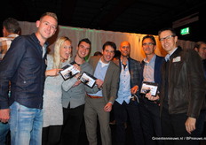Leon van Schie, Merel Prins, Bas La-Graauw, Martijn Haas, Jefry van den Hoeven, Rob van Mil en Mario Bentvelsen - vrolijk want de livestream van het event was prima te zien via HortiValley.nl