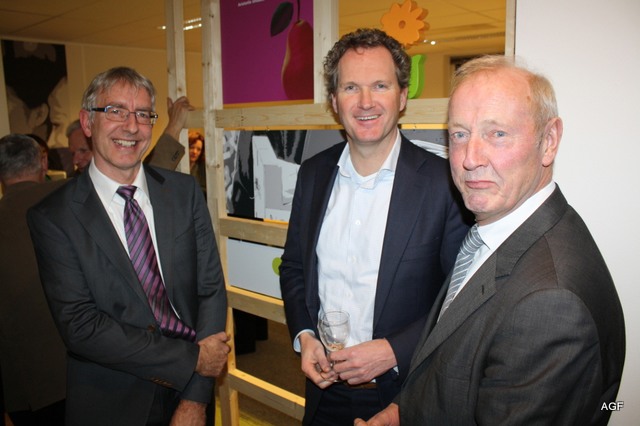 Henk Molenaar en Kees Wantenaar van Groenten Fruit Huis met in het midden accountant Eelco Craanen