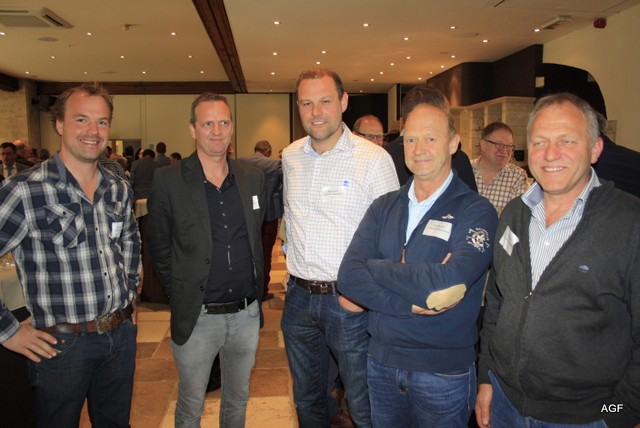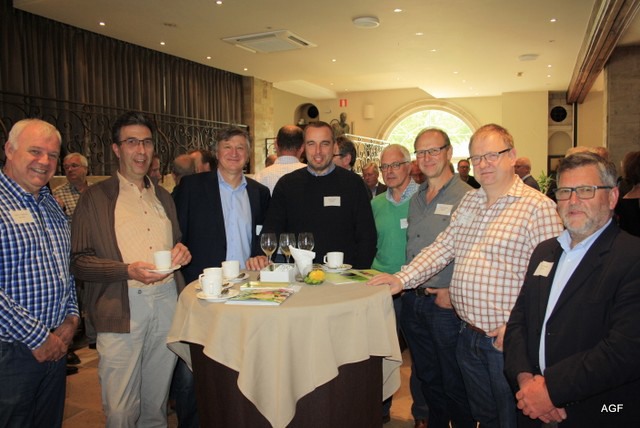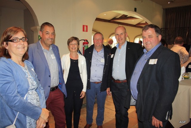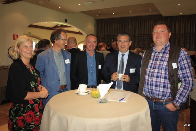 Een groepje uit het Haspengouwse. Marijke van der Stukken (Veiling Haspengouw), Luc Jacques (bestuurslid V. Haspengouw), Luc Bels (Voorzitter V. Haspengouw), Luc Vanoirbeek (Boerenbond) en Bert Vanweddingen (Teler/Bestuurslid V. Haspengouw).