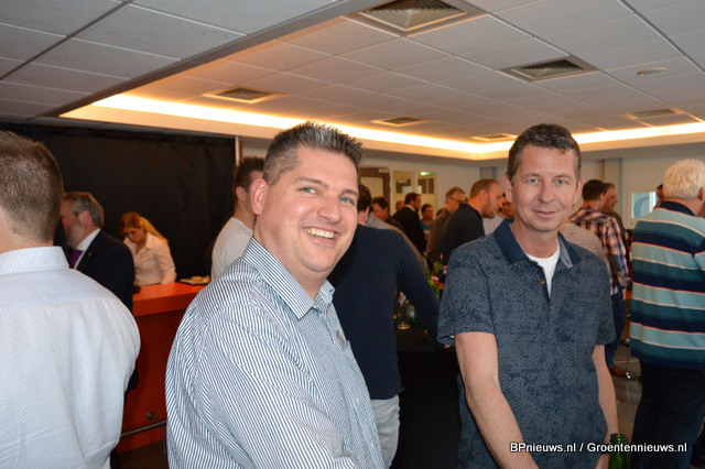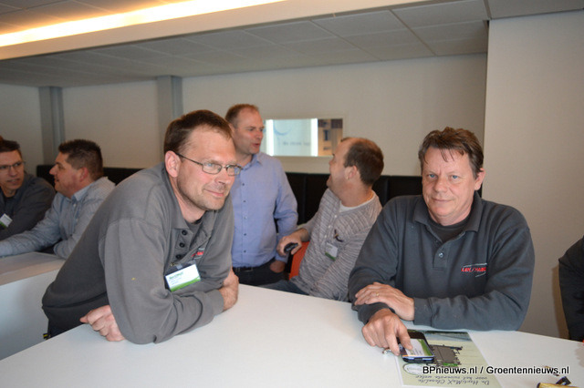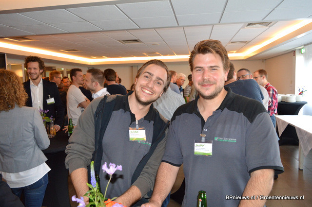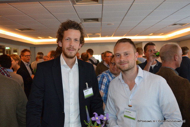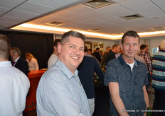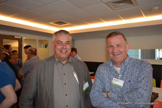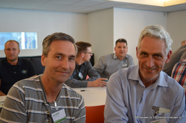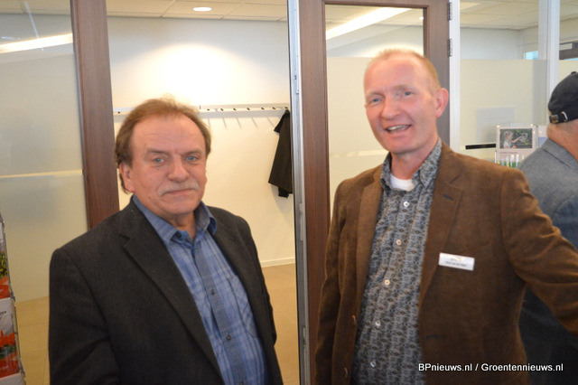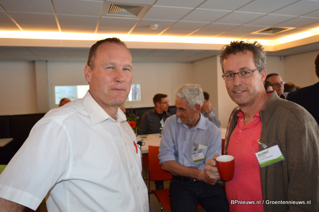 Frank Cuppen VTI Horst en René van der Stam van Hortimax. René heette iedereen bij de ingang van harte welkom.