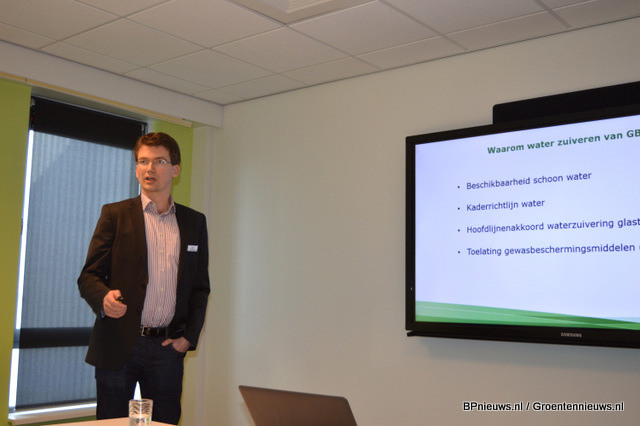 Jim van Ruijven benadrukt dat de BZG-gecertificeerde installatie op de juiste wijze gebruikt moet worden en dat de regels gelden voor al het lozingswater op de teeltbedrijven. Onderhoud van het systeem is ook belangrijk.