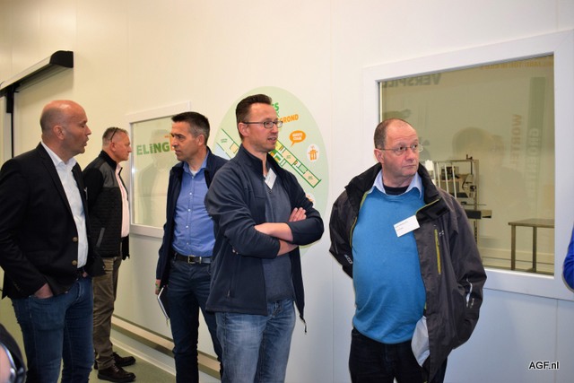 Ingrid Henderickx van Fresh Park Venlo en Jack Lagrand van Fris-Co Fruit & Vegetables luisteren aandachtig bij aanvang van de rondleiding door De Verspillingsfabiek