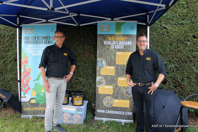 Cor-Jan van der Elzen en James MacPhail van Carbon Gold. Zij hebben verrijkte Biochar op de markt gebracht. Toe te passen binnen de hele fruitteeltsector