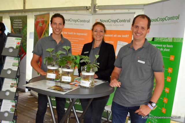 Bart Vromans van Hortinova laat de voedingsproeven met nitraat en zwavel zien. Met laag nitraat en hoog zwavel zijn de planten sterker tegen meeldauw.