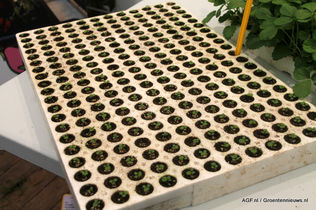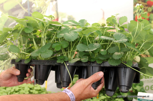 Ook in aardbei gaan er proeven van start met het Intelligen Fruit Vision meetinstrument, waarmee het aantal, formaat en de kleur van de aardbeien geautomatiseerd wordt gemeten.